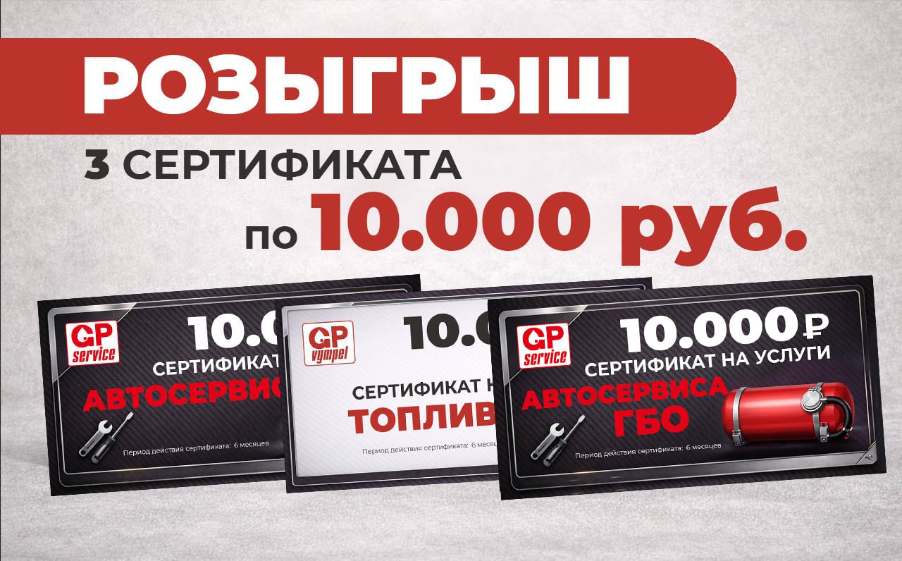 Розыгрыш 3 сертификатов по 10.000 рублей